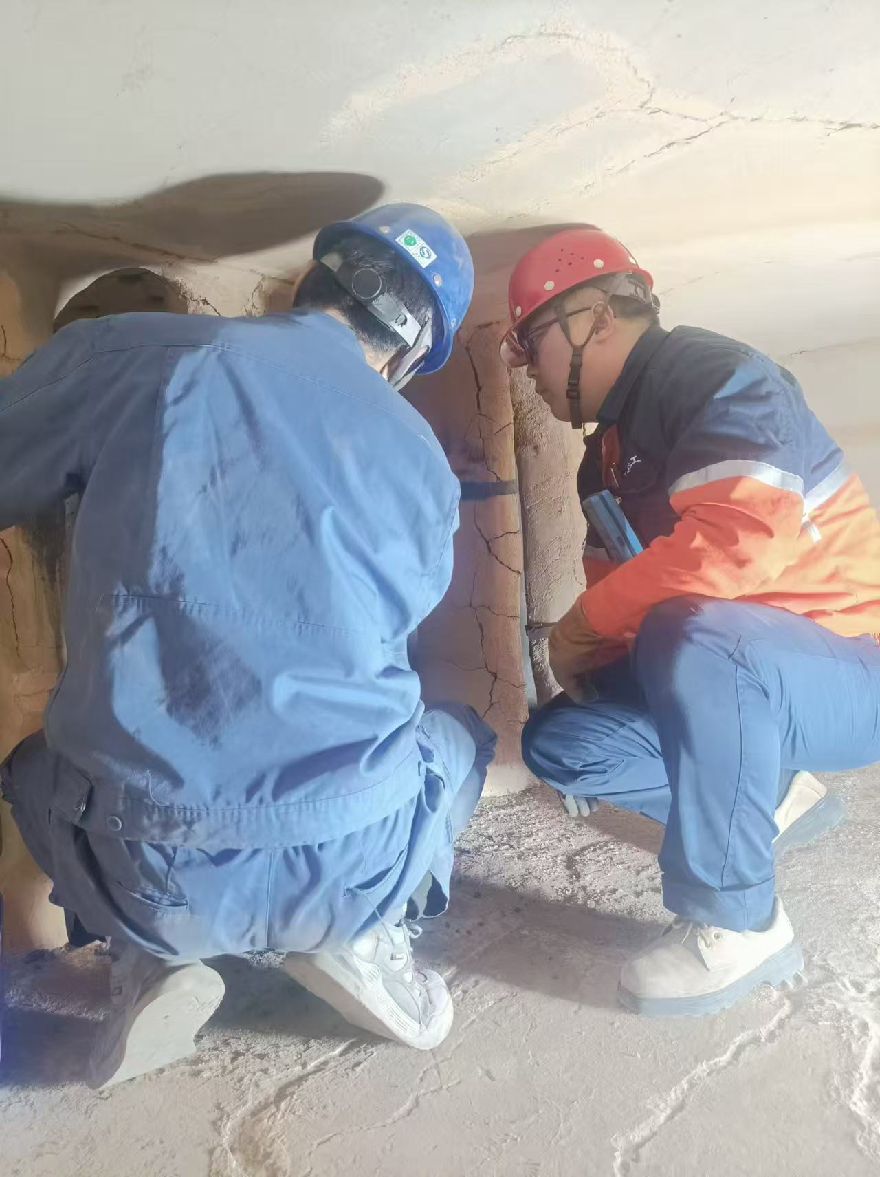 检修过程中,技术团队对锅炉的外部和内部结构进行了详细检查,发现风室管壁耐火材料部分脱落,决定采用手工浇筑的方式,根据锅炉内部情况与结构要求,将浇筑料均匀覆盖在水冷壁外壁和顶部,防止耐火材料脱落造成底部管子受高温、高浓度物料的冲刷、磨损以及泄露事故,被迫停炉。从而有效延长锅炉使用寿命。此外,特别对锅炉燃烧室风帽进行彻底清理和精确调整,放料口周边风帽容易松动,对其进行加固处理,给煤点周边风帽冲刷、损坏严重进行更换处理,全方位、零死角防止未来可能出现的磨损问题发生。经过10天连续奋战,热电联产130T锅炉检修、消缺任务全部按照安全规定、操作规范和技术标准高质量完成,经严格验收,设备设施各项性能指标均满足设计要求,有力保障锅炉安全、高效、可靠运行,护航园区平稳过冬。