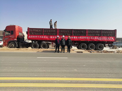 4月26日,兰州新区鑫隆泰生物科技有限公司生产厂区热闹异常,两辆满载化工基础原料的货运车抵达鑫隆泰生产厂区,兰州新区化工商贸有限公司业务人员和兰州新区鑫隆泰生物科技有限公司相关负责人正在进行货物交接,由兰州新区化工商贸有限公司供应的首批化工原料正式交付园区入驻企业使用,标志着兰州新区化工商贸有限公司“依托入园企业,拓宽经营范围”的经营战略迈出了坚实的一步。